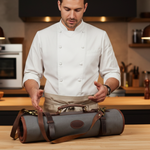 - This is classically designed, authentically styled, hand crafted genuine long-lasting Professional Leather Chef's Roll Knife Bag.