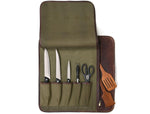 Iris Leather Chef Knife Roll Olive Green 5 Slot (KR-64)
